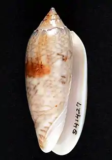 Shell of Oliva barbadensis (holotype at the Smithsonian Institution)