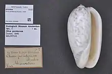 Oliva ponderosa, common name the ponderous olive, is a species of sea snail, a marine gastropod mollusk in the family Olividae, the olives.[2]