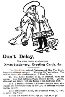 3. "War Chest Christmas Card Competition". The Sydney Mail. Vol. XI, no. 287. New South Wales, Australia. 26 September 1917. p. 33. Retrieved 31 July 2023 via National Library of Australia.