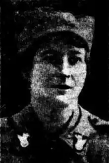In November 1915, the unit was sent to the Macedonian front, landing at Salonika, Greece and moving up to Gevgelija on the Greco-Serbian border. Six weeks later the Bulgarian forces were advancing rapidly and the hospital had to be evacuated in 24 hours. Thirty women, helped by 40 Royal Engineers, were able to dismantle the hospital before it was overrun.[1] By midnight the whole staff had got away except the three female chauffeurs. It was King's decision to head for the nearest railway station. They managed to get themselves and their ambulances on the last train before the station was bombed. Thirteen French ambulance drivers, who tried to make their way to Salonika via a rough track by Doiran, were ambushed by the Bulgarians, their cars taken, and all killed or taken prisoner.[1]