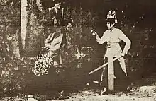 Frame from the silent film Hero Gan Fenchi (大侠甘风池 Dà xiá gānfēngchí). Olive Young is front-right.