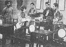 Image from A Flapper's Downfall. From left Olive Young, Jiqun Liu, Xiadian Lei, and Hanjun Liu (刘汉钧).