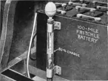 Fritchle produced a number of practical innovations in addition to his battery and vehicle patents, such as one of the first automobile child seats. The Fritchle Milostat was a clever solution to the problem electric vehicle operators had accurately estimating the driving distance available from their batteries. It was simply a hydrometer calibrated to display the percentage of charge remaining rather than the normal, but difficult to interpret, specific gravity reading.[12]