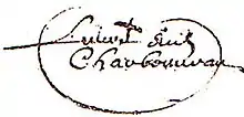 On 29 October 1675 Olivier Charbonneau received the first land grant in this area. Pierre Boucher, formerly governor of Trois-Rivières became Procurator of the Prelate of Quebec François de Laval,[8] who signed the deed of sale.[3] Olivier has left his mark there, because, like most others of his time, he was illiterate.
