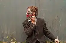 Olivier de Sagazan (born 1959 in Brazzaville, Congo) is a French artist, painter, sculptor and performer.[1] His most famous performance, "Transfiguration", was created in 1998, with more than 300 performances in 25 countries. In "Transfiguration", de Sagazan changes identities on stage from man to animal and from animal to various hybrid creatures. He pierces, obliterates and unravels the layers on his face in a frenzied search for new essence and form. In this regard he has stated, "I am flabbergasted in seeing to what degree people think it's normal, or even trite, to be alive". "Transfiguration" has been characterized as giving new meaning to the notion of life, offering a captivating, disturbing and stirring glimpse into an alternative selfhood utterly unconstrained by inhibition.