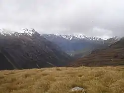 The Olivine River is a river in northern Fiordland, New Zealand. It rises north of the Cow Saddle and flows north, then north-west over Olivine Falls to become a tributary of the Pyke River near Olivine Hut.[1] The Five Passes hiking (tramping) trail passes through the upper river near Cow Saddle. The Dun Mountain Ophiolite Belt which is rich in the mineral olivine outcrops extensively in the Olivine River and its tributaries.