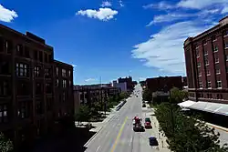 The Union Pacific Railroad was of central importance to the growth of Omaha, particularly between 1887 and 1945. Buildings in the Omaha Rail and Commerce Historic District were built to serve business related to the main line of the transcontinental railroad, which runs through the present-day district. Large warehouses, manufacturing warehouses, transfer and storage companies, and service businesses filled the area.[2]