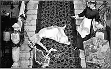 On The Broad Stairway (Edison). July 19. — This very good detective story, by J. Searle Dawley, is the second in the "Kate Kirby Cases" and makes what probably is the best regular release of the last two weeks. The situation at the opening is finely dramatic and it gets a tremendous impetus from the early development of the plot. At the start, we find Bigelow Cooper and Bessie Learn about to be married. Bigelow has discovered that Bessie's older sister, May Abbey, is the one whom he really loves. She returns his love; but won't hear of his breaking Bessie's heart and insists on his going on with the ceremony. She has been interrupted while writing a note to him to this effect, and has slipped it down beside a settle. A few moments later the bride-to-be is found dead on the broad stairway. When the detectives come, it is found that Bigelow's knife killed her, and when May's unfinished note is also found, it looks as though he had murdered her. May does not know that he is innocent, nor does the spectator. One of the detectives is a woman, Laura Sawyer, and when the inspector, Robert Brewer, tries to wring the truth out of May, her sympathies are so worked up that she goes out to make further investigations, believing they will clear May and Bigelow. This we think is the picture's most brilliant scene; but the whole of it is very clever. The acting, photography and direction are all worthy of the best commendation.[5]