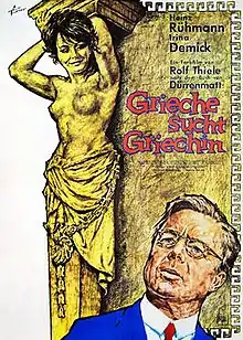 Once a Greek (German: Grieche sucht Griechin) is a 1966 West German comedy film directed by Rolf Thiele and starring Heinz Rühmann, Irina Demick, and Charles Regnier. It is based on the 1955 novel of the same name by Friedrich Dürrenmatt.[1]
