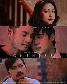 Oneness is an upcoming 2023 Manipuri movie directed by Priyakanta Laishram. It is the first gay-themed movie of Manipur, Northeast India. It is the first mainstream Manipuri movie to deal with same-sex relationships and sexual identity.[1] The film stars Maya Choudhury, Priyakanta Laishram, Suraj Ngashepam and Sachinker Sagolsem in the lead roles.[2][3] It is produced by Roushil Singla and Priyakanta Laishram under the banner Priyakanta Productions.[4] It was scheduled to release on 28 October 2023.[5] On IMDb, Oneness is ranked number two among the top three Manipuri movies.[6]