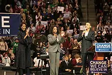 - ↑ "Thanks to Oprah, Obama camp claims biggest crowd yet". CNN. December 9, 2007. Retrieved April 1, 2010.