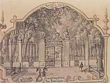 The public only gained access to the park around 1802. In the following years, public events were increasingly held in the Orangery Garden. Prior to this, the grounds and the Orangery had been used exclusively by courtly society for festivities and gatherings.[1] Public use was maintained when the garden, together with the Orangery, was leased to the city of Darmstadt for 99 years in 1925. After the Second World War, the Orangerie served temporarily as an alternative accommodation for the Staatstheater Darmstadt after the destruction of the municipal theatre building. The files of the conversion work carried out by the city for this use until 1972 are in the Darmstadt City Archives.[2] However, the extensions were removed again after the State Theatre moved out in 1972 to restore the original condition.[3]