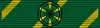 The ribbon of the order is 37 mm (1.5 in) in diameter wide in green with 2 mm (0.079 in) wide diagonal yellow rays spaced 11 mm (0.43 in) apart.[3]