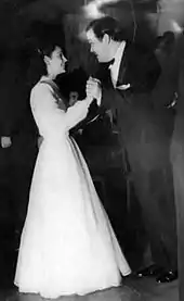 On November 14, 1934, Welles married Chicago socialite and actress Virginia Nicolson[17]:332 (often misspelled "Nicholson")[32] in a civil ceremony in New York. To appease the Nicolsons, who were furious at the couple's elopement, a formal ceremony took place December 23, 1934, at the New Jersey mansion of the bride's godmother. Welles wore a cutaway borrowed from his friend George Macready.[26]:182