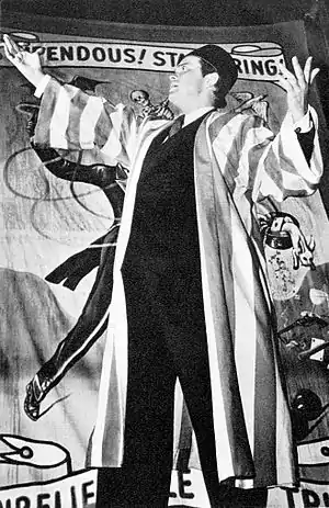 A revised production of Katharine Cornell's Romeo and Juliet opened December 20, 1934, at the Martin Beck Theatre in New York.[17]:331–332[33] The Broadway production brought the 19-year-old Welles (now playing Tybalt) to the notice of John Houseman, a theatrical producer who was casting the lead role in the debut production of one of Archibald MacLeish's verse plays, Panic.[34]:144–158 On March 22, 1935, Welles made his debut on the CBS Radio series The March of Time, performing a scene from Panic for a news report on the stage production.[20]:70–71