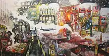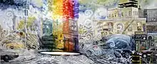 Oscar Oiwa was born in São Paulo, Brazil, son of Japanese immigrants. He received his B.F.A. (1989) from the School of Architecture and Urbanism, São Paulo University. Oiwa was influenced by comic books, art, and magazines throughout his youth, as well as the urban environment of his birthplace.[1] He experienced contemporary art during this time exploring the local art scene in São Paulo in nearby galleries and became an assistant at the São Paulo Art Biennial during his college years. Oiwa held his first solo exhibition while he was still in college and soon after participated in the 21st São Paulo Art Biennial (1991).[2] Throughout his career, he has participated in art globally, beginning in the city of his birth, then relocating to Tokyo in 1991 after graduating from university. After ten years in Japan, interrupted by a year spent in London in 1995, he moved to New York City in 2002 and has since made the city his base of operations.[3] Over his career, Oiwa's oeuvre encompasses everything from tradition oil paintings, texts, and art objects to interactive immersive art, experimental VR project, fictional narrative-based installations, public art, and book production.