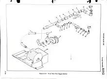 The MB-5 featured 4-wheel drive, with no-slip differentials on the rear axle. The Marine Corps variants of the truck featured no-slip differentials on the front axle assembly as well. The full floating axles sat on leaf spring suspension, mounted to both the front and rear of the frame.[3] While unloaded, the truck's suspension was quite rigid; and there was even a noticeable tilt to the left side which compensated for the extra weight when the water tank was full.