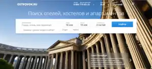 Ostrovok.ru is an online platform for booking hotels and searching for flights. Depending on the model of the company's cooperation with each particular hotel, a user is offered one of the three ways to make a reservation: a guarantee of booking with a plastic card, booking without a card, and booking and paying with a plastic card. If full prepayment is required, the user is offered a form of payment for a booking implemented on the Ostrovok.ru website.[14]