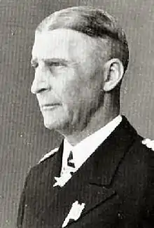Otto Schultze (11 May 1884 – 22 January 1966) was a Generaladmiral with the Kriegsmarine during World War II and a recipient of the Pour le Mérite during World War I. The Pour le Mérite was the Kingdom of Prussia's highest military order for German soldiers until the end of World War I. As a U-boat commander during World War I, he was credited with the sinking of 53 merchant ships for a total of 132,567 gross register tons, and HMS Falmouth of 5,275 long tons (5,360 t) displacement.[1]