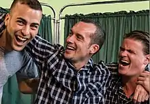 Ian (Patrick Marlin), POM (Lee Cook) and Joe (Adam Tuominen) from the 2017 Australian production of "Our Boys"