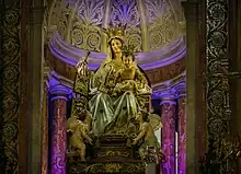 The canonical coronation was further authorised by Pope John XXIII, which occurred on 25 March 1960 via the Papal legate Cardinal Valerian Gracias of Bombay.[2] on 5 January 2011, Pope Benedict XVI approved the patronage by assigning the Marian title was the principal patroness for the Apostolic Vicariates of Kuwait and the Apostolic Vicariate of Arabia,[1] which were later renamed as Apostolic Vicariate of Northern Arabia[5] and Apostolic Vicariate of Southern Arabia.[6]