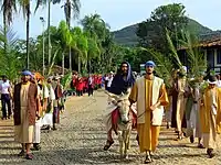 In Pirenópolis, the manifestations of the religious traditions of Holy Week have been held since the XVIII century, funded by brotherhoods, such as the Blessed Sacrament, and housed exclusively in parish churches.[7][21] The rites of the celebration of the Passion of Christ, liturgical and paraliturgical acts, constitute an exceptional cultural moment, of emotional and affective value to the people of the place, and has been conceived since its origin and was the celebration of greatest local expression; it is the period when most celebrations were held.[21][42]