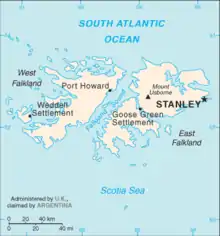 - ↑ "Falkland Islands (Islas Malvinas)". The World Factbook. United States Central Intelligence Agency. 2 July 2009. Retrieved 23 July 2009.