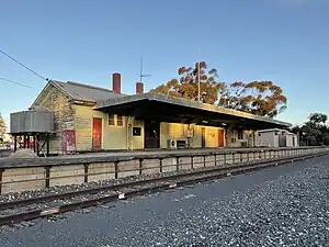Ouyen is a closed railway station in Ouyen, on the Mildura railway line, in Victoria, Australia. The station is the junction for the Pinnaroo line westward to Panitya and Pinnaroo.