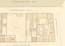 The property was home to three households at the 1840 census. Niels Severin Müller (1776-), a merchant (grosserer), resided on the ground floor with his wife Marie K. Poulsen and one maid.[8] Dorothea Catharina Olsen, widow of a distiller, resided on the second floor with her daughter Oline Charlotte Cecilia Olsen, governess Clara Theodora Hansen Gjersing (in wine merchant Hansen's household) and one maid.[9] Frederik Wind Schneider, a book printer, resided on the third floor with his wife Karen Elisabeth /née Kofoed) and one maid.[10]