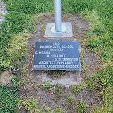 A plaque commemorating the 1913 Owensmouth School Trustees. Today, the school has been renamed to Canoga Park Elementary School.