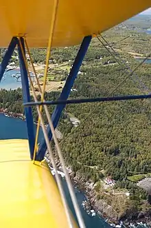 When Samuel de Champlain explored Owl's Head in 1605, the Abenaki Indians called it Bedabedec Point, meaning "Cape of the Winds." Mariners would name it for the shape of the promontory, which they thought resembled the head of an owl.[3] First incorporated as part of Thomaston in 1777, and then as part of South Thomaston in 1848, Owls Head was itself set off and incorporated on July 9, 1921. The town is home to both the Owls Head Light Station, a 30-foot (9.1 m) tall granite lighthouse built in 1826 to mark the southern entrance of Rockland Harbor, and to the Owls Head Transportation Museum.[4]
