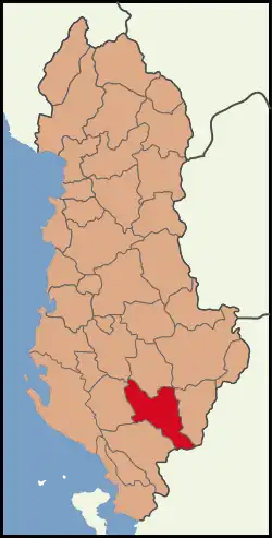 Përmet District (Albanian: Rrethi i Përmetit) was one of the 36 districts of Albania, which were dissolved in July 2000 and replaced by 12 newly created counties. It had a population of 25,837 in 2001, and an area of 929 km2 (359 sq mi).[1] Its area has an Aromanian minority.[2][3] It is in the south-east of the country, and its capital was the town of Përmet. Its territory is now part of Gjirokastër County: the municipalities of Përmet and Këlcyrë.