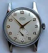 In 1949, the subsidiary of company Chronotechna Šternberk was established in Nové Město nad Metují, specializing in the production of personal watches (wristwatches and pocket watches). The first prototype watches were made in 1954 and were marked 'Spartak', the 'PRIM' brand was registered in 1956, the serial production started in 1957, thus Czechoslovakia has become one of only twelve countries in the world capable of producing wrist watches.[1] It was the only manufacturer of watches in Czechoslovakia, reaching about half a million watches produced annually just before the Velvet Revolution.[2][3]