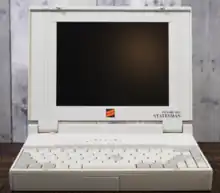 The Packard Bell Statesman was an economy line of notebook computers introduced in 1993 by Packard Bell. They were slower in performance and lacked features compared to most competitor products, but they were lower in price.[1] It was created in a collaboration between Packard Bell and Zenith Data Systems. The Statesman series was essentially a rebrand of Zenith Data Systems Z-Star 433 series, with the only notable difference of the logo in the middle and text on the front bezel.