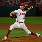 On August 4, 2021, the Angels selected Naughton's contract and promoted him to the major leagues.[26] At the time of his promotion, he had a 5.34 ERA over 55+23 innings pitched between Rocket City and Salt Lake.[27] On August 8, he made his major league debut in relief at Dodger Stadium against the Los Angeles Dodgers, giving up one run, one hit, and two walks over one inning.[28] On September 1, 2021, against the New York Yankees, Naughton made his first career start, pitching 3+23 innings, allowing three runs and striking out two.[29] Naughton finished the 2021 season with the Angels appearing in seven games (five starts) in which he went 0–4 with a 6.35 ERA, 14 walks, and 12 strikeouts over 22+23 innings.[30]