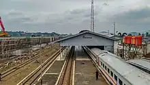 The Padalarang high-speed rail station, built by PT Kereta Cepat Indonesia China (KCIC) stands on the northwest of the station, which was formerly used as a ballast loading yard.[14] Padalarang Station has been expanded to serve passenger transfers between high-speed trains and regular train services.[15][16][17]