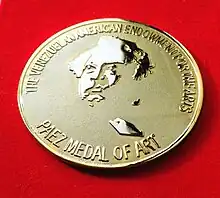 The Paez Medal of Arts is a decoration awarded by The Venezuelan American Endowment for the Arts (VAEA) that is presented once a year to an individual or group that has had an impact and contributed to excellence, growth, support and the proliferation of the arts in Venezuela and the United States.[1][2] It is named in honor of José Antonio Páez, leader of the Independence of Venezuela, who lived in exile the last years in New York, where he became a philanthropist.[3]