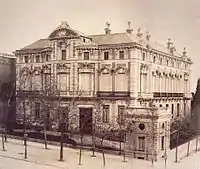 The Palacio del Marqués de Portugalete was a grand palace built in the 1860s, located at 56 Calle de Alcalá, on the corner of Calle Alfonso XI, in Madrid. Also known as the Palace of Bailén, it belonged to the family of Francisco Javier Castaños y Aragorri, a descendant of General Francisco Castaños, who was the victor at the Battle of Bailén. It was built by architect Adolfo Ombretch, who also built the nearby palace of Linares. For many years it was a venue for the wealthy elite to meet and discuss national politics. It was demolished after the Spanish Civil War, and in 1946, replaced by the National Institute of Forecast, now occupied by the National Institute of Health.[1]
