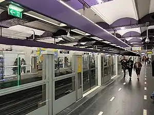 As part of the automation of line 1, its platforms were upgraded during the weekend of 7 and 8 February 2009, then fitted with platform screen doors in October 2010. The corridors of the station were renovated a second time on 31 December 2014, reviving the bevelled white tiling as part of the RATP un métro + beau program.[1]
