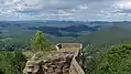 The Palatinate Forest Nature Park (German: Naturpark Pfälzerwald) lies in the south of Rhineland-Palatinate in Germany and borders on France. The nature park covers an area of 177,100 hectares (684 sq mi) and some 76% of its area is under the woods of the Palatinate Forest, the largest contiguous forest region in Germany. Together with parts of northern Alsace and Lorraine, it forms the Palatinate Forest-North Vosges Biosphere Reserve and has an impressive Bunter sandstone landscape.
