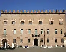The Palazzo Bonacolsi, also known as Palazzo Castiglioni, is a 13th-century Gothic-style aristocratic palace located in the center of the town in Piazza Sordello in front of the Ducal Palace in Mantua, region of Lombardy, Italy.