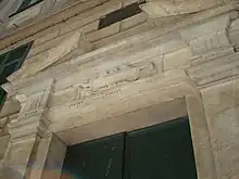 The monumental late 15th century portal leads to a atrium renovated in the 19th century that holds a plaque commemorating an episode of the Resistance. The narrow façades are frescoed in quadrature. They are compensated for by the brightness of the inner courtyard. A porticoed staircase, partly filled in, runs above the courtyard.[1] The building is divided into private flats. The monumental flat on the piano nobile retains two frescoed salons.