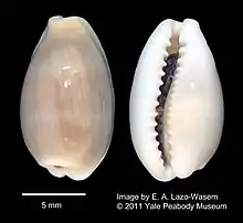 Palmadusta clandestina is a species of sea snail, a cowry, a marine gastropod mollusk in the family Cypraeidae, the cowries.[1]