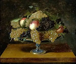 One of his few documented still lifes depict a bowl of peaches, and recalls the near-contemporary paintings of fruit bowls in Milan, including the 1594-98 painting in the Ambrosiana by Caravaggio and similarly themed paintings by Fede Galizia. His son, Carlo Francesco Nuvolone, also a prominent in painter in Lombardy. Panfilo's younger son Giuseppe Nuvolone also a painter. Giuseppe's son Carlo was a mediocre quadratura specialist active mainly around Cremona.