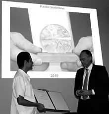 - ↑ "Paolo Giubellino Medalla 2010 de la Division de Particulas y Campos" (PDF).