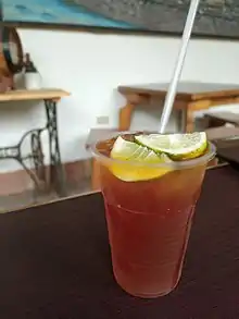 Papelón con limón (Regional Spanish for: Panela with lemon) is a refreshing Venezuelan beverage made with rapadura (raw hardened sugar cane juice), water and lemon or lime juice.[1][2]