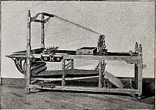 A paper-ruling machine is a device for ruling paper. In 1770, John Tetlow was awarded a patent for a "machine for ruling paper for music and other purposes."[1] William Orville Hickok invented an "improved ruling machine" in the mid-19th century.[2] As the device is designed for drawing lines on paper, it can produce tables and ruled paper.