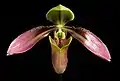 ![]() | Paphiopedilum sangii Braem 1987 | Indonesia (Sulawesi) | 1,000–1,200 metres (3,300–3,900 ft) |