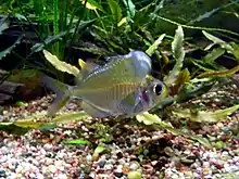 Parambassis pulcinella, the humphead glassfish or humphead perchlet, is a species of Asiatic glassfish native to fast-flowing streams in the Ataran basin (itself a part of the Salween basin) in southeast Myanmar and west Thailand.[1][2][3] It reaches a length of 10 cm (3.9 in) and is sometimes seen in the aquarium trade.[3] It is a relative of the perch.