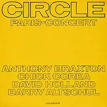 Paris-Concert is a live double album by the short-lived jazz band Circle recorded at the Maison de l'O.R.T.F. in Paris on February 21, 1971 and released on ECM the following year. The quartet consists reed player Anthony Braxton and rhythm section Chick Corea, David Holland and Barry Altschul.[1]